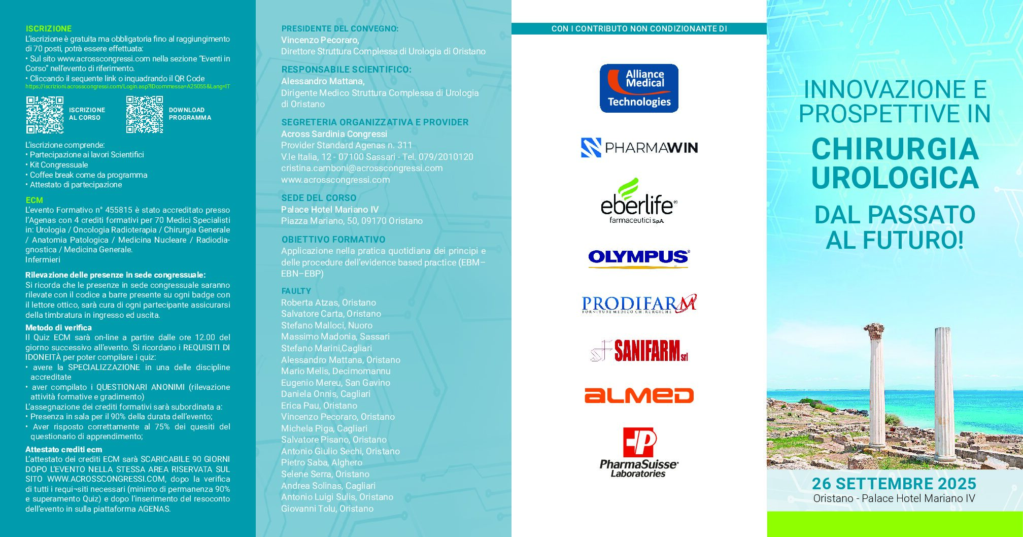 26 SETTEMBRE ORISTANO – “INNOVAZIONE E PROSPETTIVE IN CHIRURGIA UROLOGICA DAL PASSATO AL FUTUO!”