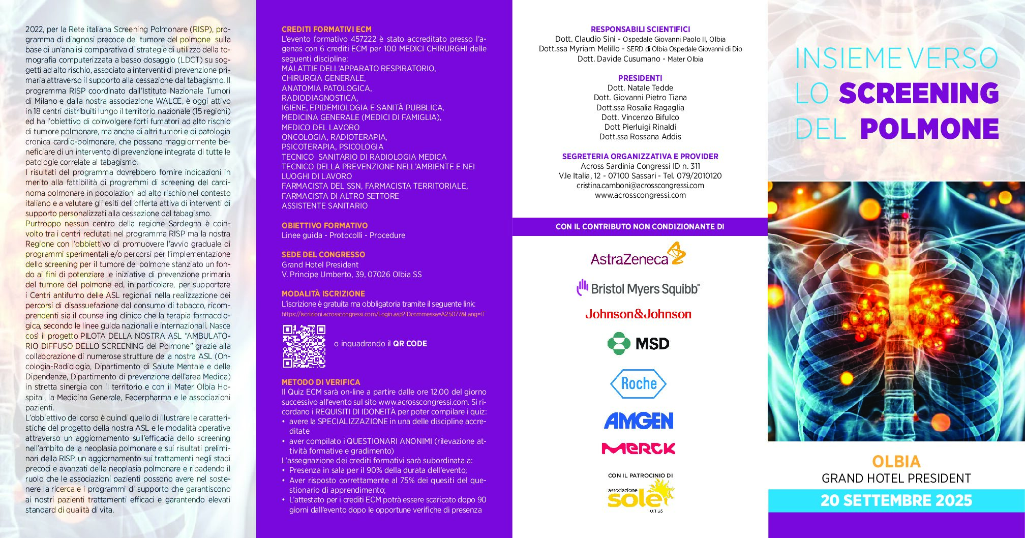 20 Settembre – INSIEME VERSO LO SCREENING DEL POLMONE – Hotel President Olbia