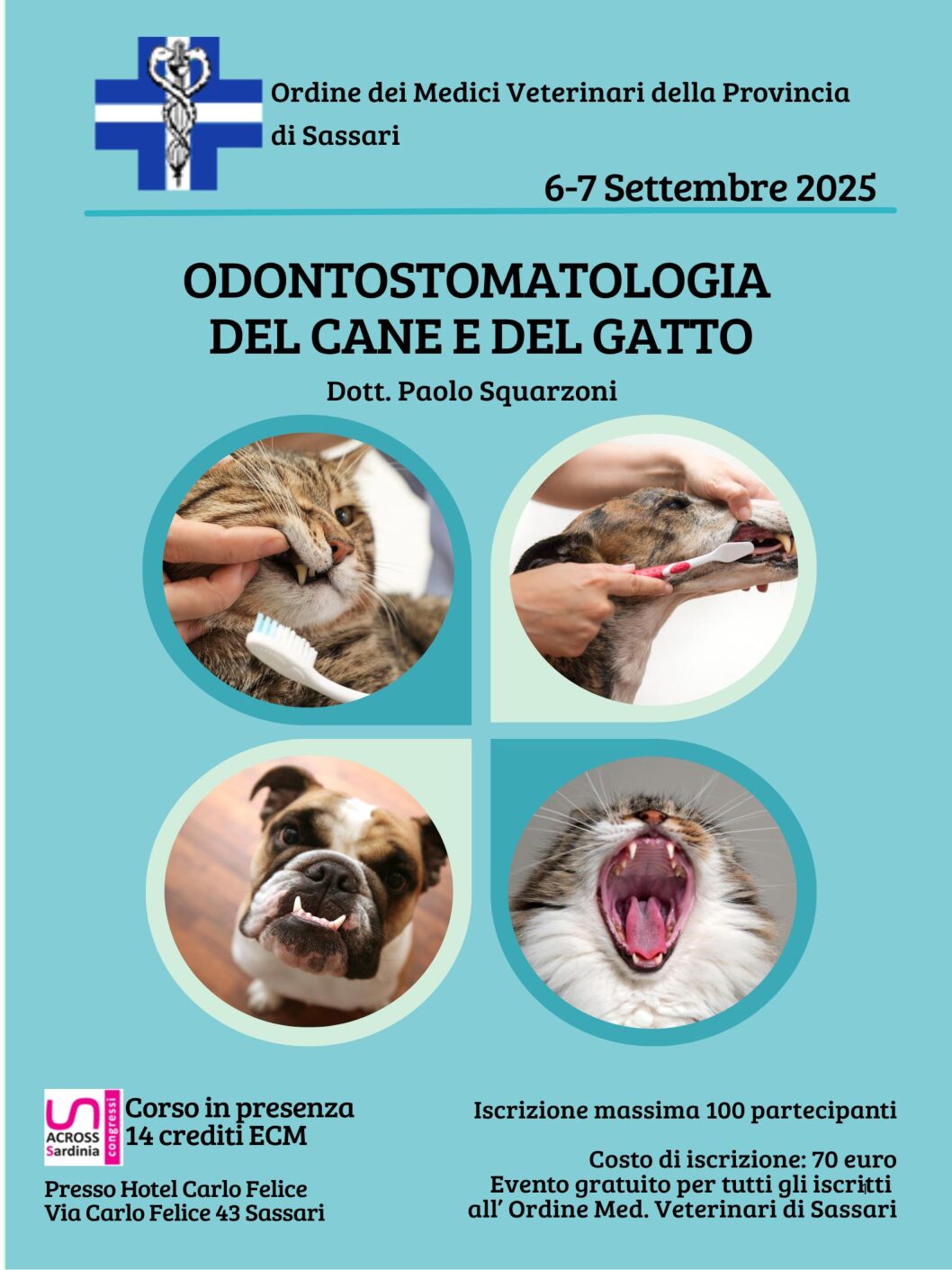 6/7 SETTEMBRE “ODONTOSTOMATOLOGIA DEL CANE E DEL GATTO” – Hotel Carlo Felice Sassari