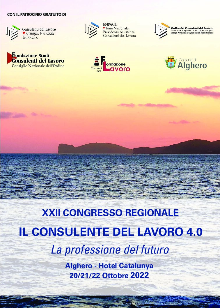 20/21/22 OTTOBRE 2022 – ALGHERO HOTEL CATALUNYA – XXII CONGRESSO REGIONALE IL CONSULENTE DEL LAVORO 4.0 – La Professione del Futuro