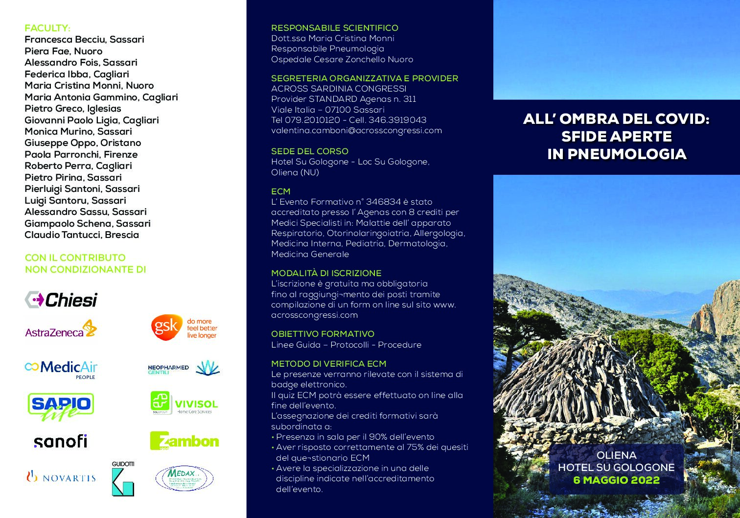 6 MAGGIO 2022 OLIENA – HOTEL SU GOLOGONE – ALL’ OMBRA DEL COVID: SFIDE APERTE IN PNEUMOLOGIA