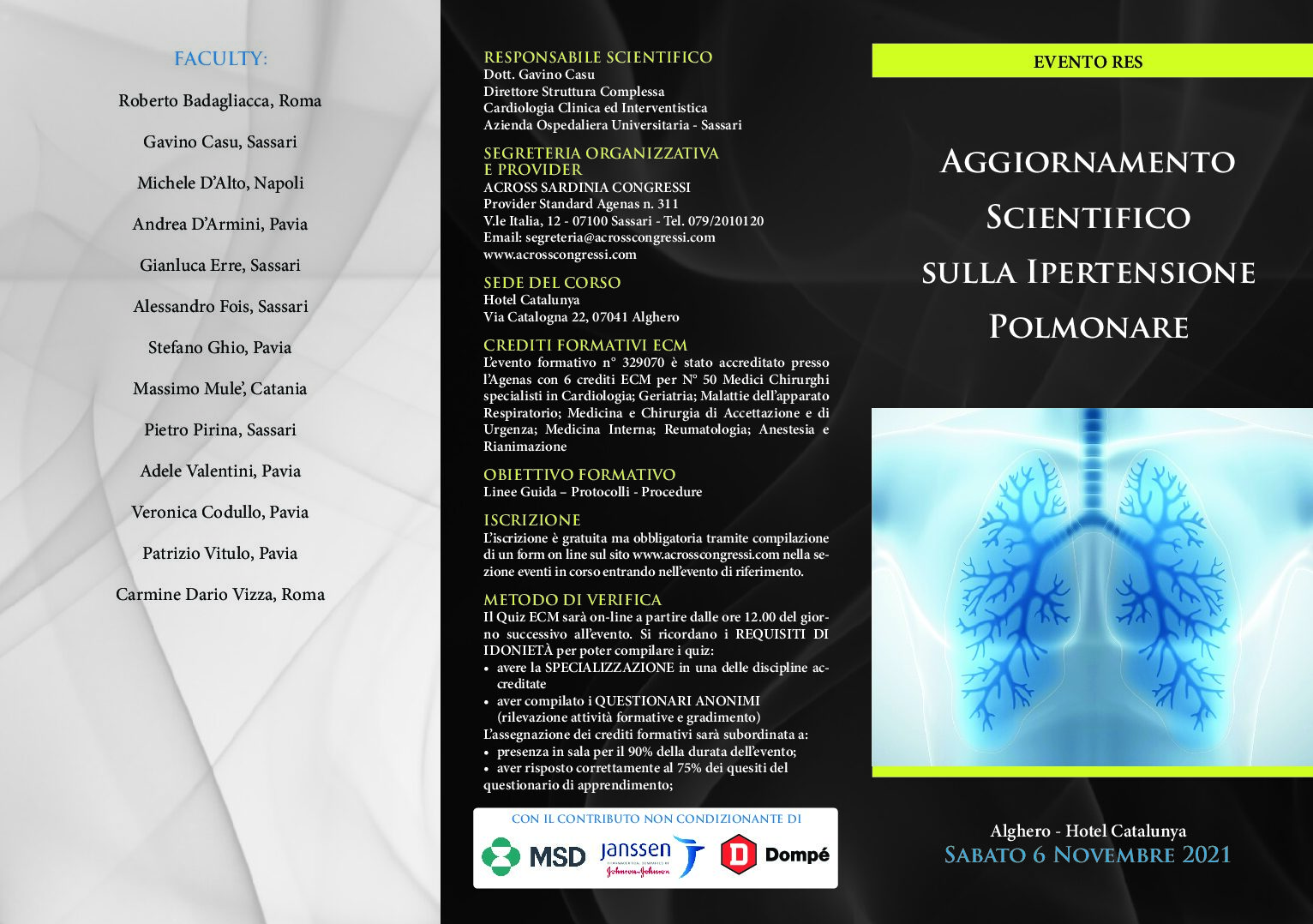 ECM L'Evento Formativo ECM è stato accreditato per 6 Crediti per 50 Medici Specialisti nelle seguenti Discipline: CARDIOLOGIA, GERIATRIA, MALATTIE DELL'APPARATO RESPIRATORIO, MEDICINA E CHIRURGIA DI ACCETTAZIONE E DI URGENZA, MEDICINA INTERNA, REUMATOLOGIA, ANESTESIA E RIANIMAZIONE
