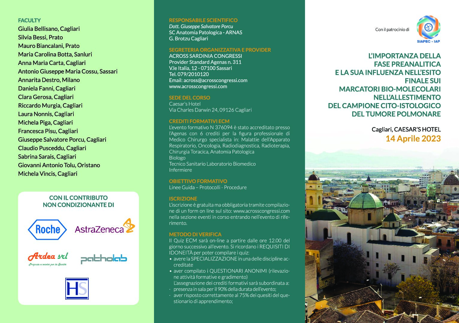 CAGLIARI – “L’IMPORTANZA DELLA FASE PREANALITICA E LA SUA INFLUENZA NELL’ESITO FINALE SUI MARCATORI BIO-MOLECOLARI NELL’ALLESTIMENTO DEL CAMPIONE CITO-ISTOLOGICO DEL TUMORE POLMONARE” – 14 APRILE 2023